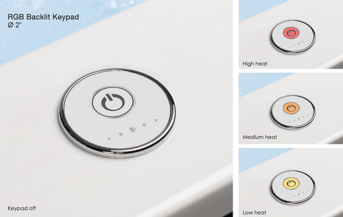 The heater operates through a keypad located on the edge of the tub with three temperature settings and a 30-minute timer.